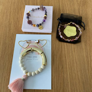Das Armband hatte ich schon länger im Blick und freue mich, dass ich es jetzt bestellt habe. Ich mag die Farben in den Lilatönen und die verschiedenen Perlen. Es ist sogar ein Vogel dabei, so hübsch. Die Größe passt super. Dazu habe ich noch so schöne Armbänder und einen tollen Ring geschenkt bekommen, vielen Dank, liebe Kim.–Sina am 20. Mar 2024