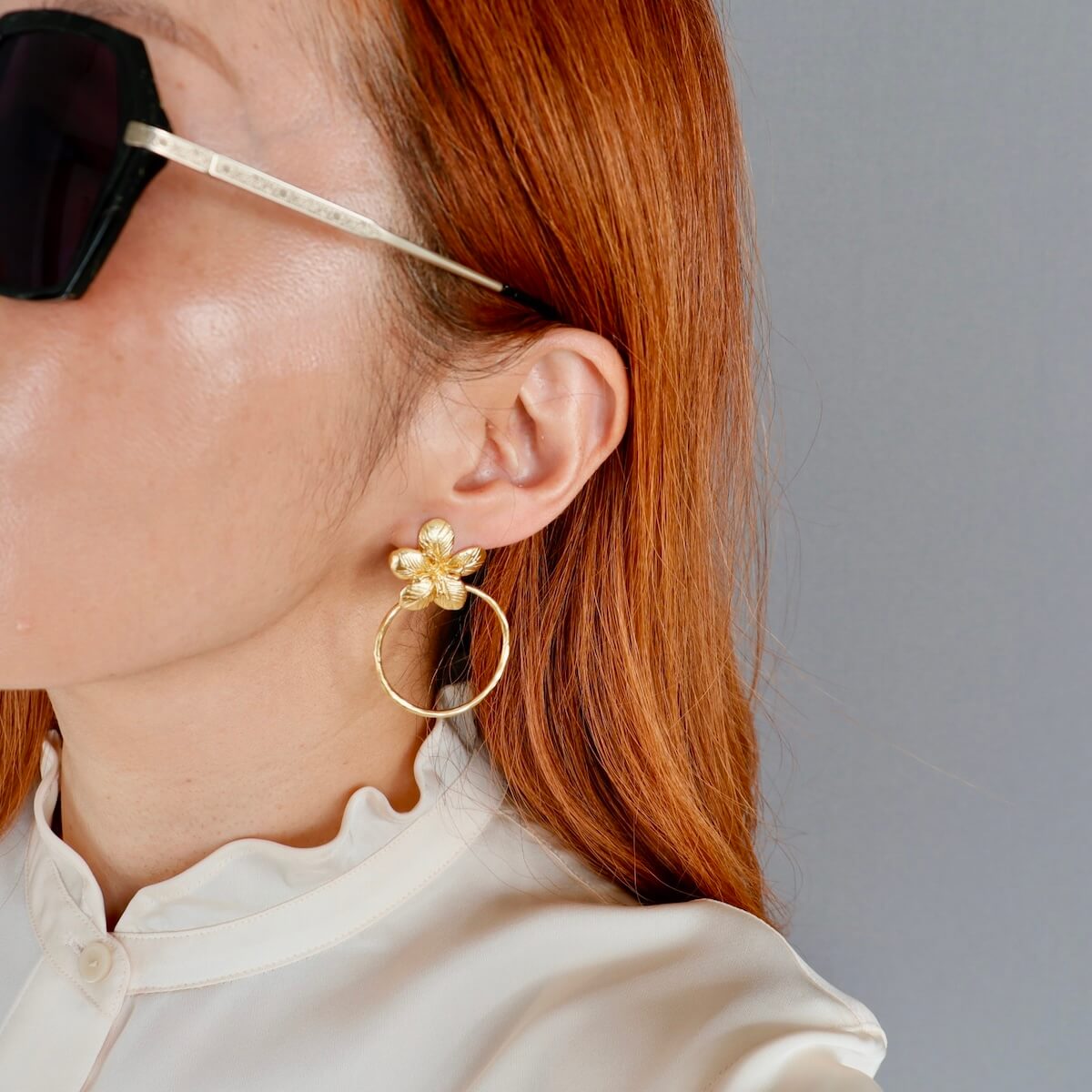 Machen Sie sich selbst ein hübsches Geschenk mit diesen zauberhaften Hibiskus-Blumen-Ohrringen. Die leuchtenden und auffälligen Blütenblätter fangen das Sonnenlicht ein und schimmern bei jeder Bewegung. Der matte, warme Gold-Finish verleiht dem Schmuckstück eine dezente und dennoch elegante Note, die perfekt zu jedem Outfit passt. Ein stilvolles Accessoire, das natürliche Schönheit und feine Handwerkskunst vereint.